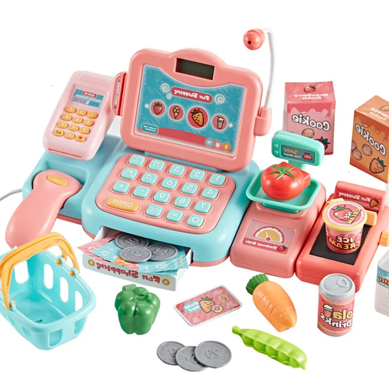 Kids Pretend Play Shopping Toys Simulation Supermarket Electronic Cashier Cash Register Children's
