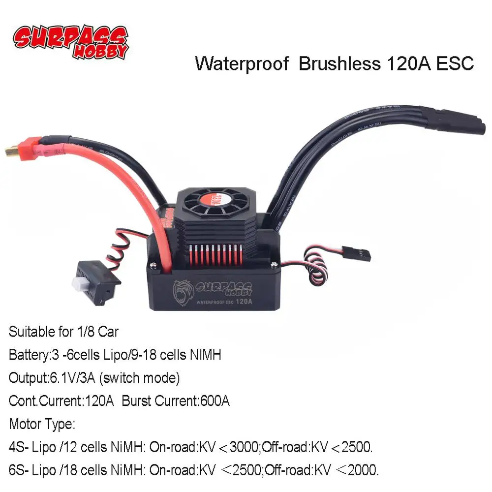 SURPASS HOBBY KK waterproof 120A ESC Electronic Speed Controller for 1/10 RC Car 3674 3670 4068 407