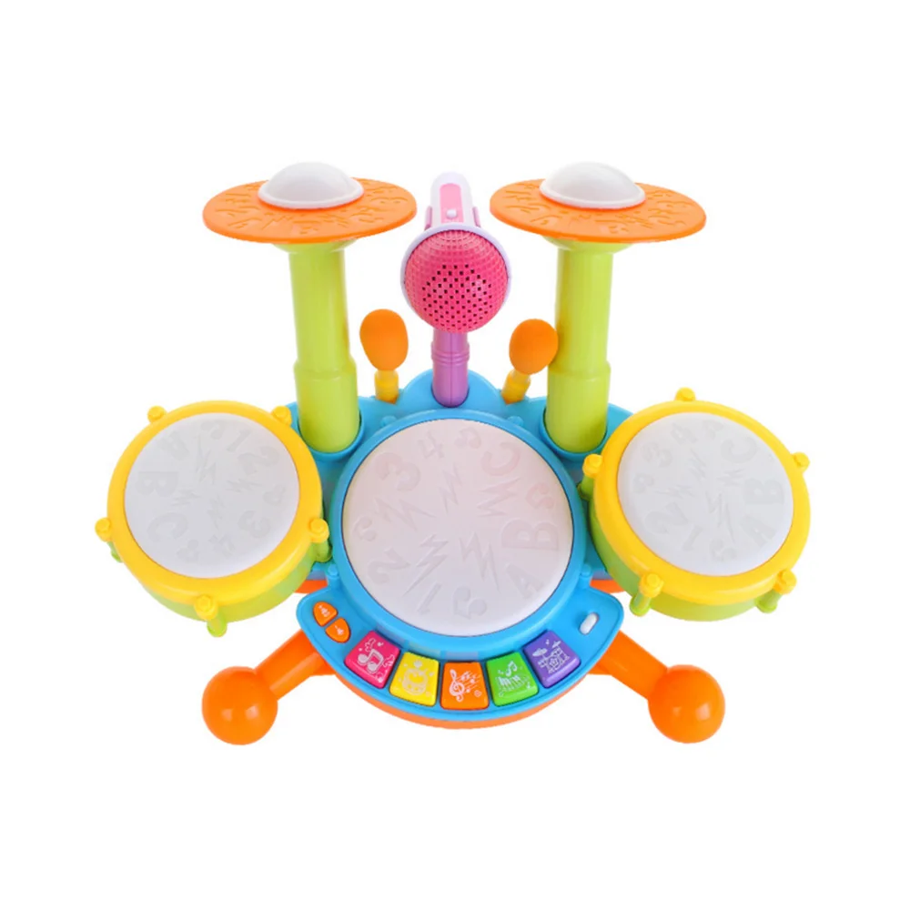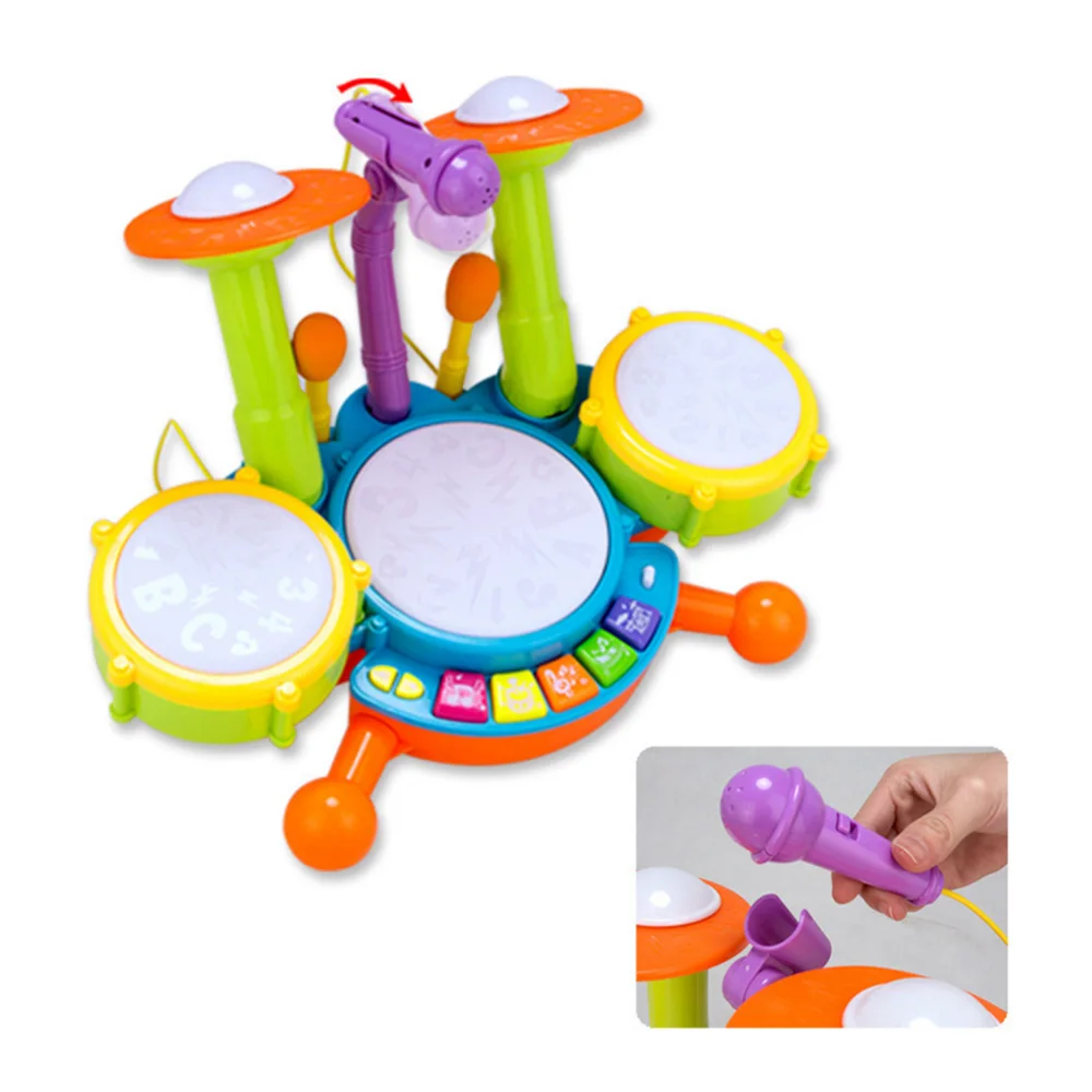 Kids Electronic Drum Toy Flash Light Educational Playset with Adjustable Microphone Dynamic Set Dev