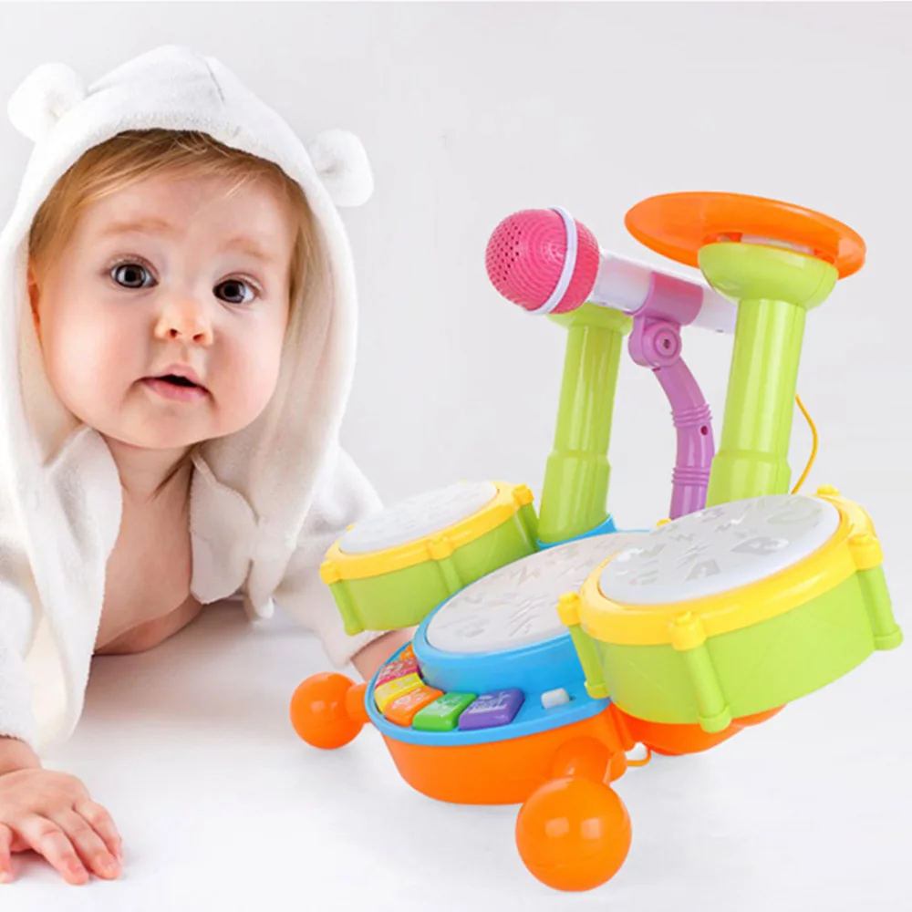 HOT SALE Kids Electronic Drum Toy Flash Light Educational Playset with Adjustable Microphone Dynamic Set Dev