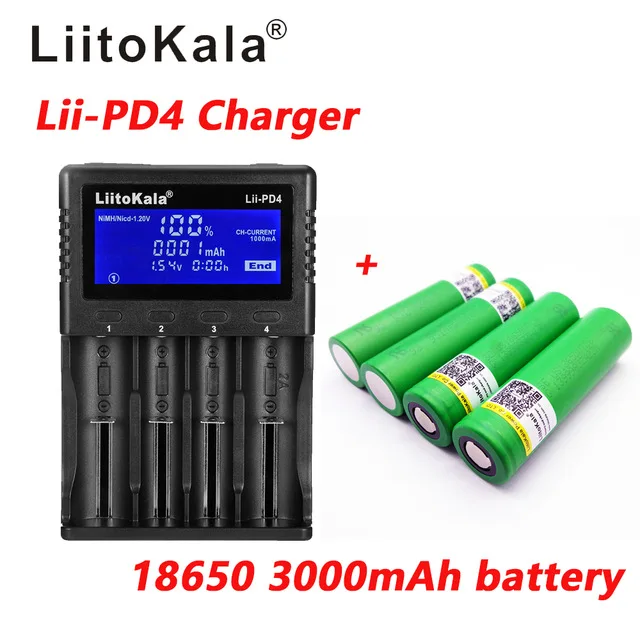BEST 1pcs LiitoKala lii-PD4 LCD 3.7V 18650 21700 battery Charger+ 4PCS 18650 3000 VTC6 30A Electronic ci
